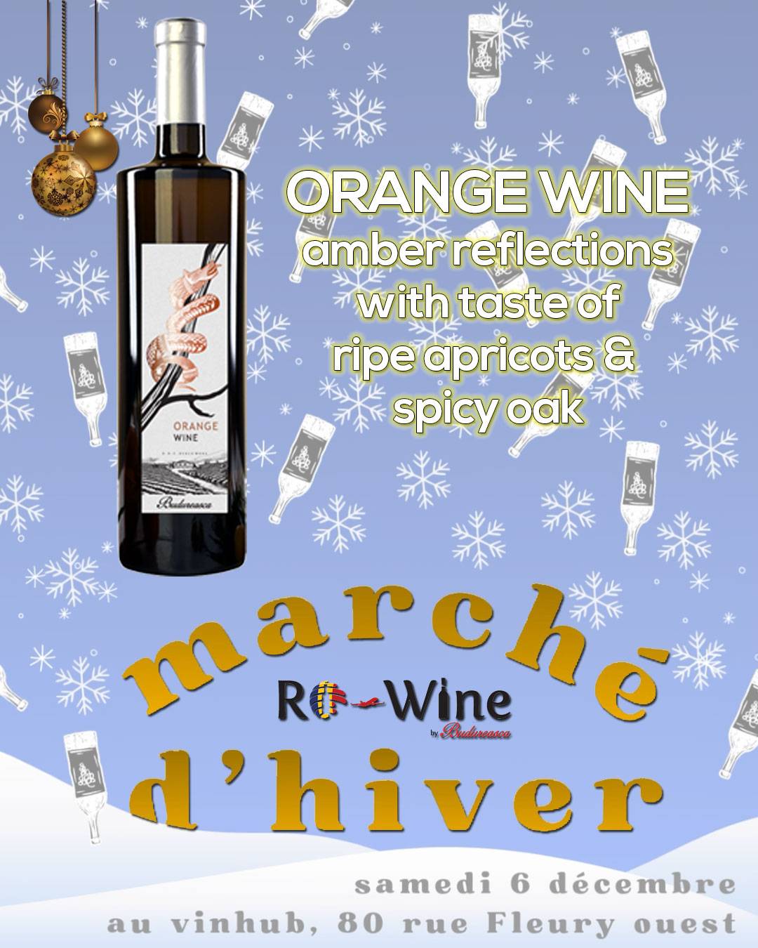 C’est ce samedi que ça se passe Les derniers billets pour le Marché d’hiver s’envolent comme flocon dans le vent de décembre. N’attendez pas la dernière minute! L’entrée vous donne droit à: Des dégustations de vin d’importation privée et de téquila et Mezcal Deux bouchées préparées par Louis-Philippe Breton, propriétaire du Tricot Principal * Achats de bouteilles possible sur place ** Petits plats disponible à la vente pour les plus gourmand.es Samedi 6 décembre 2025 11h à 17h 80 rue Fleury...